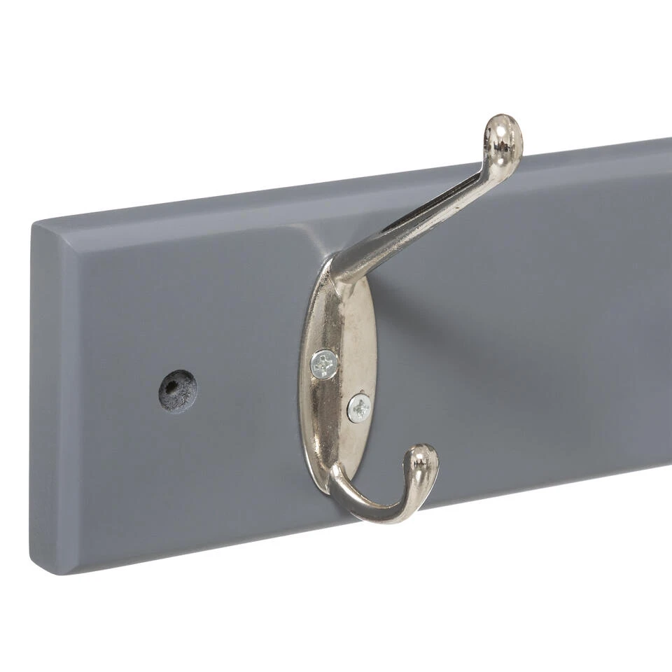 5Five kapstok rek voor aan de muur/wand in de kleur grijs. Ideaal om je jassen en hoofddeksels aan op te hangen, dankzij de 6 ophanghaken/knoppen is er genoeg ruimte om diverse stukken op te hangen. Afmeting: 58 x 9 cm. Materiaal: MDF/ijzer. Wandkapstokken.