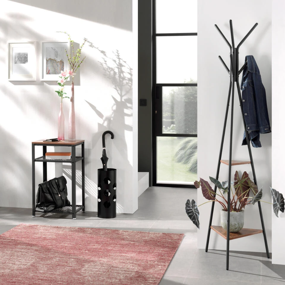 Liefhebber van eenvoudige en effectieve meubelen? Dan is deze kapstok perfect voor jou! Naast een zeer goede prijs/kwaliteitsverhouding biedt de kapstok ook de mogelijkheid om verschillende objecten zoals hoeden, tassen, sjaals of andere voorwerpen aan op te hangen. En dat is nog niet alles! De kapstok bevat ook twee compacte legplanken waarop u decoratieve objecten kunt etaleren.