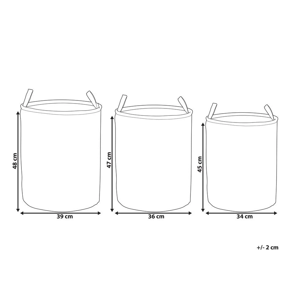 Wasmanden met trekkoordsluiting. Deze set van 3 opbergmanden is een perfecte optie om elke kamer in je huis georganiseerd en schoon te houden. De stukken worden geleverd met hoezen die worden afgesloten met trekkoorden, zodat je wasgoed, speelgoed of andere spullen die je niet gebruikt gemakkelijk kunt verbergen. De producten zijn gemaakt van polyester en katoen, waardoor ze zowel functioneel als onderhoudsvriendelijk zijn.