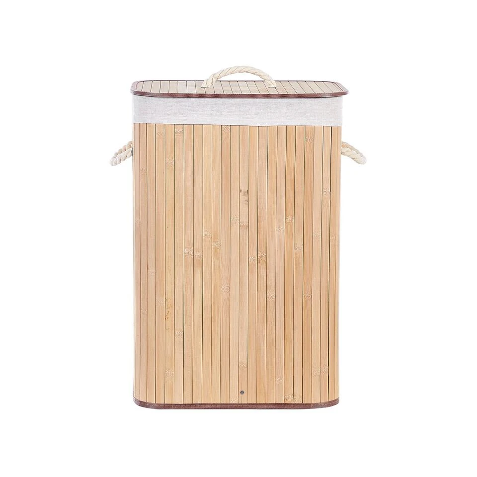 Opbergmand voor badkamer of woonkamer. Compact en praktisch – zo kan deze wasmand worden omschreven. Het is gemaakt van bamboehout en heeft een solide constructie en een eenvoudig maar esthetisch ontwerp. De binnenkant is opgevuld met uitneembare en wasbare stof voor hygiënisch gebruik, terwijl het deksel en de zijkanten van de mand extra handvatten hebben die het transport vergemakkelijken. Dankzij het ruime ontwerp kan de mand zowel voor de was als voor het opbergen van je accessoires worden gebruikt.
