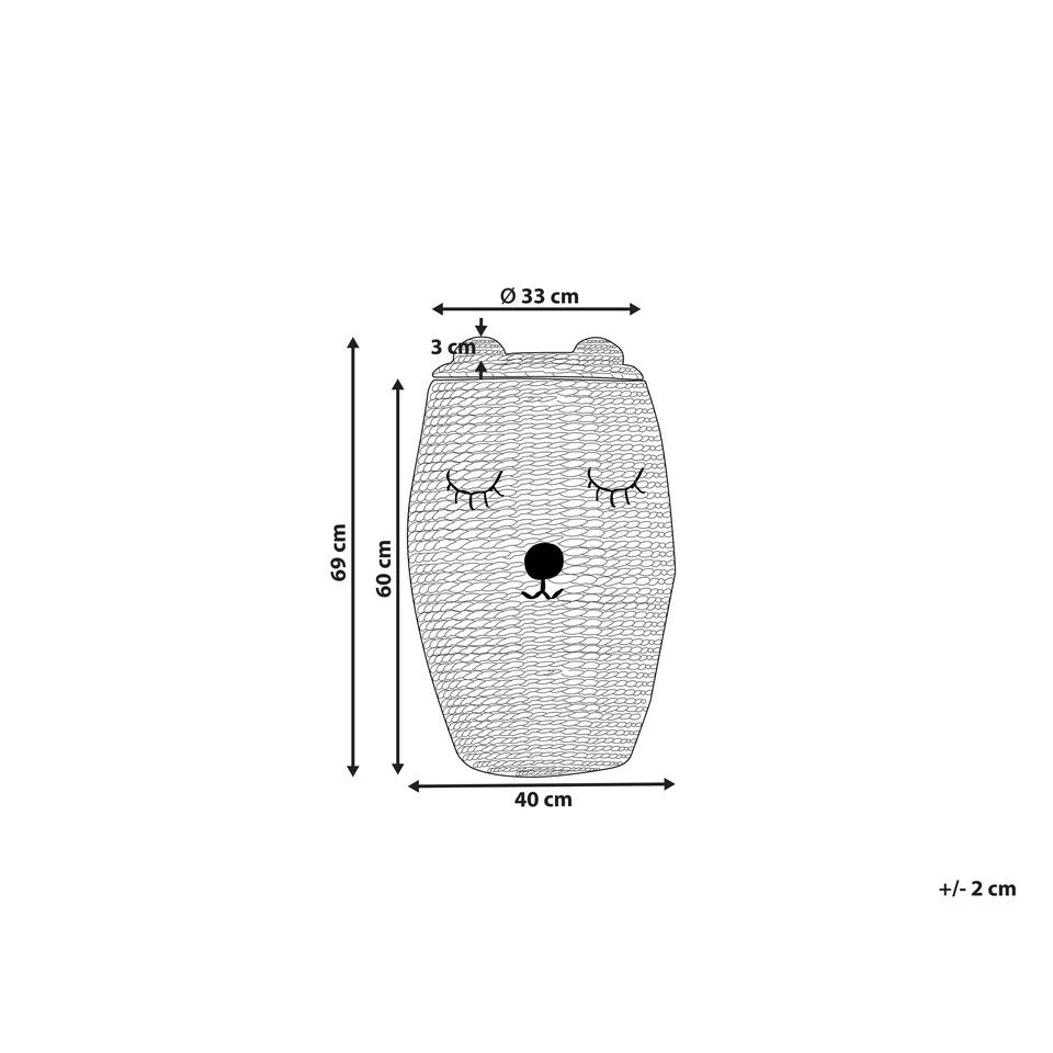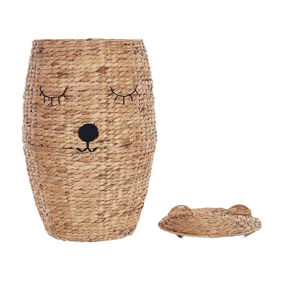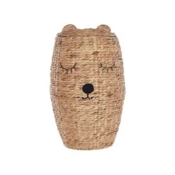 Geweven Speelgoedmand. Deze schattige rieten mand past in elke kinderkamer. Met details van berengezichtjes en een deksel met oren is hij zowel charmant als functioneel. Hij is ideaal om speelgoed in op te bergen of als wasmand en maakt het schoonmaken en organiseren van spullen leuk.