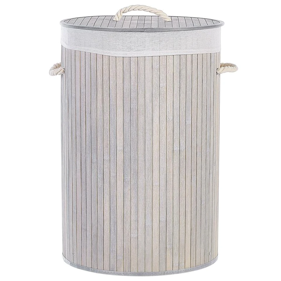 Wasmand met afneembaar deksel en handgrepen. Organiseer al je wasgoed of berg andere spullen op in deze stijlvolle, handgemaakte mand. Het is gemaakt van bamboehout aan de buitenkant en hoogwaardig polyester aan de binnenkant, en is vrij duurzaam en gemakkelijk te onderhouden. De mand wordt geleverd met een afneembaar deksel en handgrepen, waardoor je hem gemakkelijk kunt verplaatsen. Wanneer het stuk niet in gebruik is, kan het worden opgevouwen en opgeborgen.