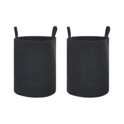 Handgemaakte katoenen opbergmanden set. Deze set van 2 manden gemaakt van katoenen touw, zullen je helpen om je ruimte op te ruimen en te organiseren. Met praktische handvaten zodat je ze gemakkelijk kan verplaatsen. De manden zijn perfect als extra opbergruimte voor dekens en kussens in je slaapkamer of om speelgoed in op te ruimen in een kinderkamer.