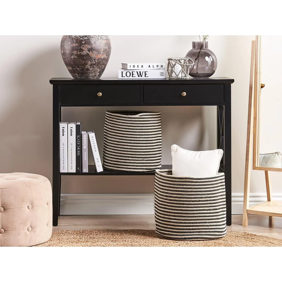 Boho manden met gestreept patroon. Berg je extra kussens of dekens op in deze stijlvolle, handgemaakte boho manden. De stukken zijn gemaakt van katoen, waardoor ze duurzaam en onderhoudsarm zijn. Ze kunnen ook in andere delen van je huis worden gebruikt, bijvoorbeeld in de badkamer, waar ze perfect zijn voor het opbergen van wasgoed. Dankzij hun kleurencombinatie passen de manden in verschillende interieurstijlen.