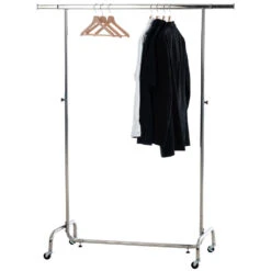 De aantrekkelijke afwerking zorgt voor een moderne uitstraling die in elke omgeving elegant oogt. Bovendien kan deze kapstok moeiteloos naar elke plaats worden geduwd dankzij de 4 zwenkwielen. Twee wielen zijn voorzien van remmen en kunnen gemakkelijk worden geblokkeerd.