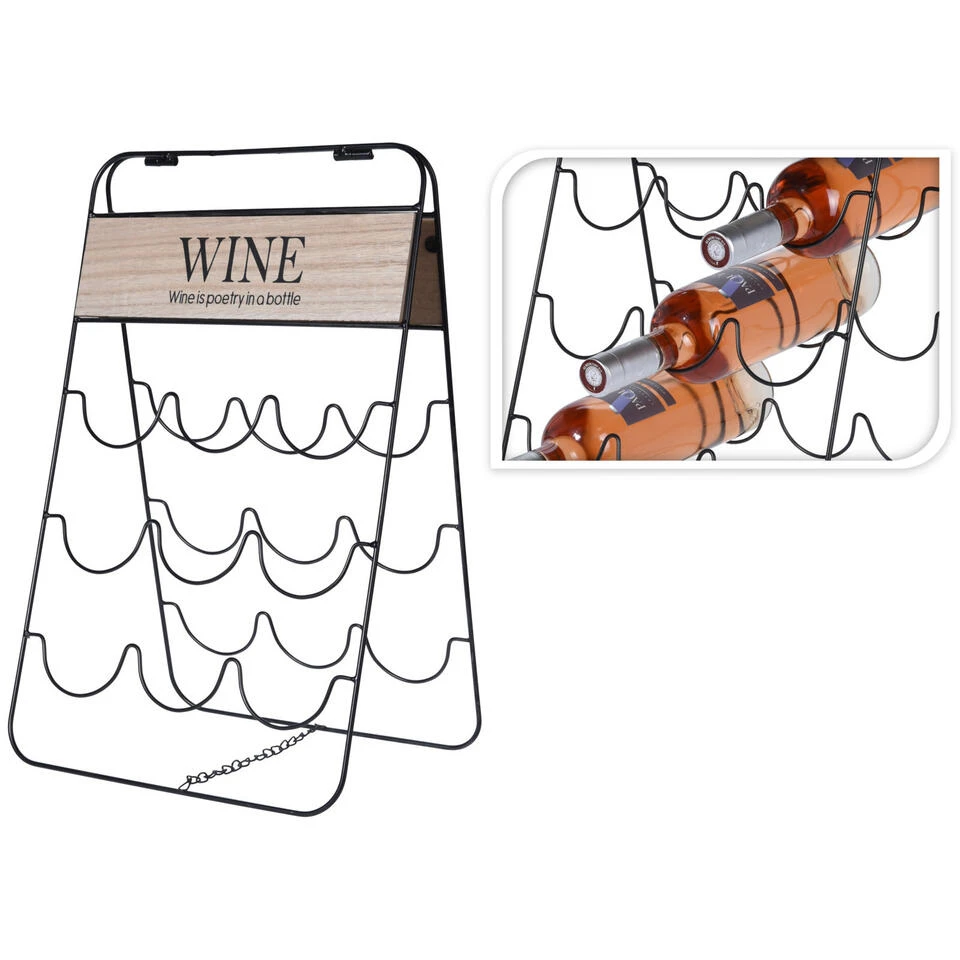 Wijnflessen rek/wijnrek wine voor 9 flessen. Staand rek met de tekst: Wine is poetry in a bottle. Geschikt voor 9 flessen. Formaat: 30 x 2 x 49 cm. Materiaal: metaal. Kleur: zwart.