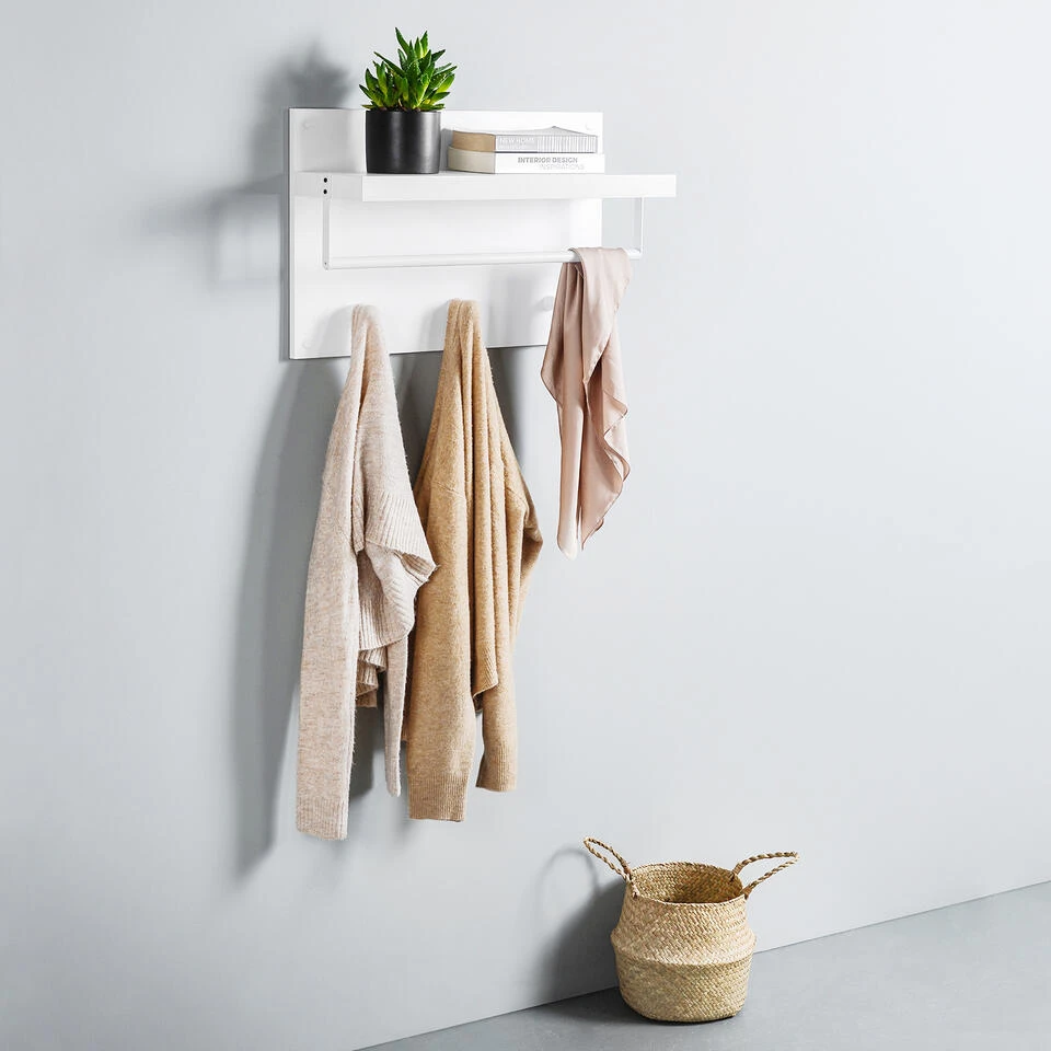 Te weinig vloeroppervlak in de hal of wilt u het vrij van rommel houden? Dit wandkapstokpaneel is het antwoord op uw langverwachte wensen. Met 3 haken, een ophangstang en een plank, is onze aan de muur gemonteerde kapstok zo ongeveer de one-stop-shop voor alles wat met ‘entree’ te maken heeft. Meerdere ophangmogelijkheden Met 3 knoppen kun je gemakkelijk een tas of rugzak op deze aan de muur gemonteerde kapstok hangen voor gemakkelijke opslag. De ophangstang is ideaal voor het ophangen van jassen en overhemden waar je liever geen schouderbobbels in wilt hebben. Kies uit een bruin paneel en zwarte plank voor een rustieke uitstraling, een zwart paneel en bruine plank voor een moderne look, of een geheel witte kapstok voor een minimalistisch design. Wandkapstok LWS031W01 Specificaties: Materiaal: spaanplaat, metaal – Productafmetingen: 60x40x21.5cm