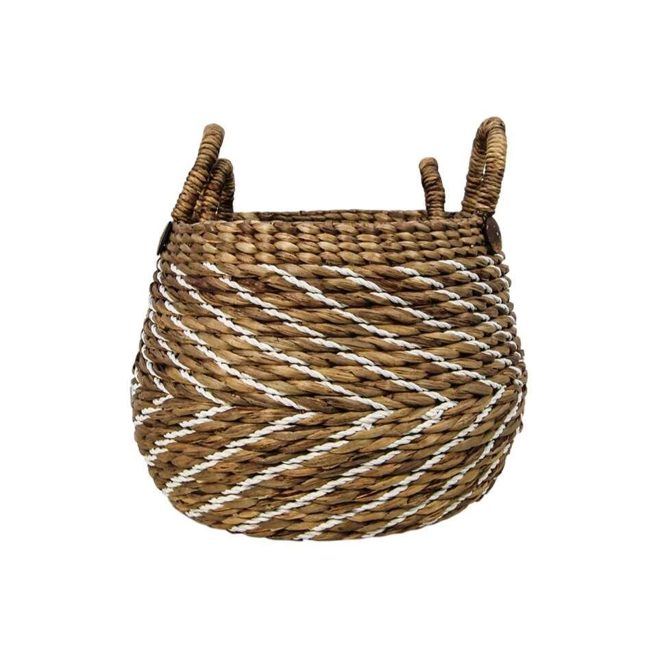 Deze handgevlochten kleine opbergmanden zijn gemaakt van waterhyacint en hebben daarom een natuurlijke look. De mandjes hebben een trendy zigzag patroon. In deze decoratieve manden kun je van alles opbergen. Denk hierbij bijvoorbeeld aan accessoires, cosmetica en andere losse spullen. De manden hebben 2 verschillende maten. Hierdoor kunnen ze gemakkelijk in elkaar kunnen worden opgeborgen. Aangezien het een natuurlijk product betreft, kunnen afwijkingen in vorm en kleur optreden. De afmetingen van de mandjes zijn ø40×42, ø30×36 cm.
