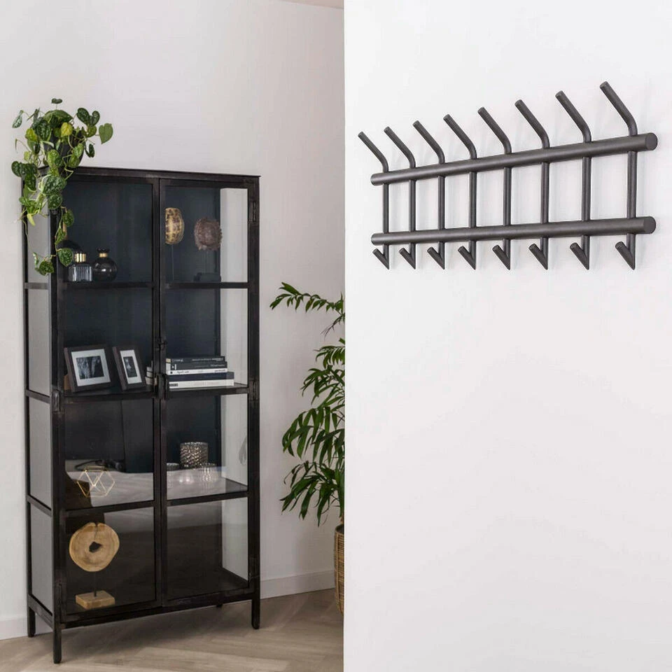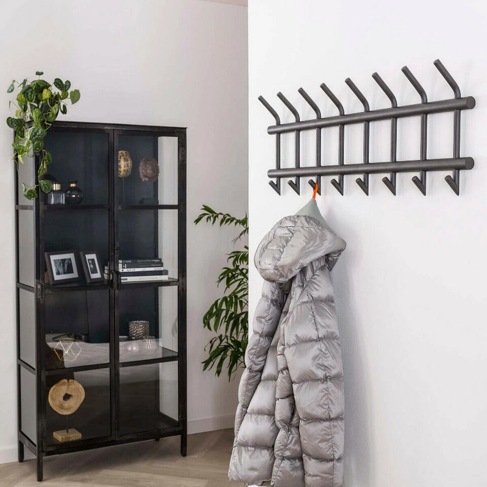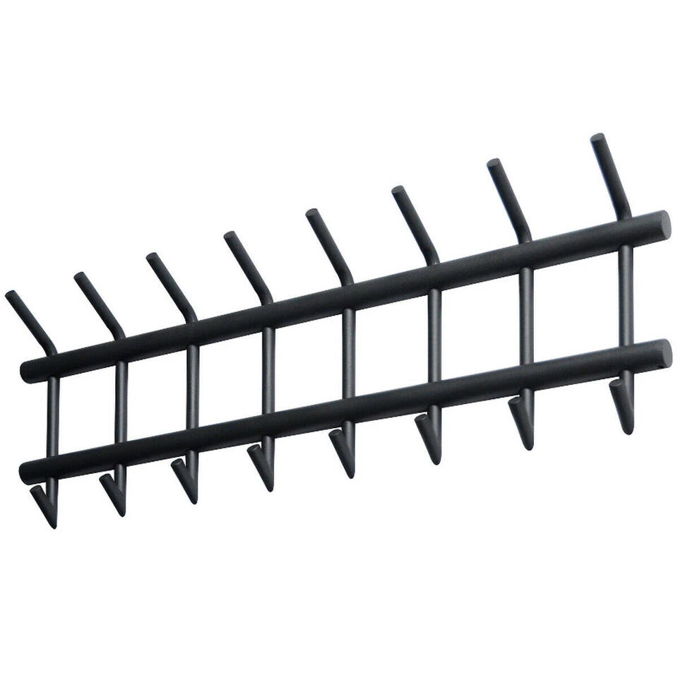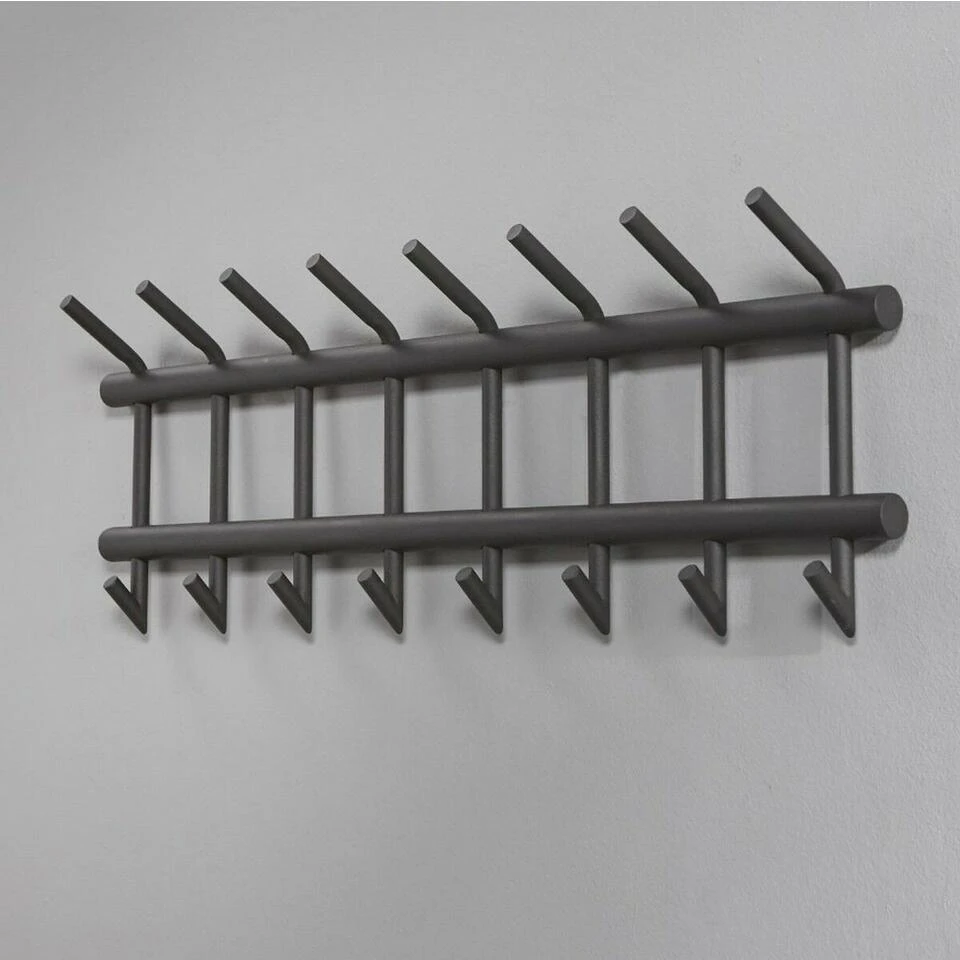 Kapstok Isaac wordt gekenmerkt door een modern en stoer ontwerp. Hij bestaat in zijn geheel uit donkergrijs mat gepoedercoat staal en vormt hierdoor één mooi geheel. In totaal heeft deze variant 8 gelaste haakjes, waaraan zowel aan de boven- als onderkant jassen of accessoires kunnen worden opgehangen. Extra handig is het feit dat hij opgebouwd geleverd wordt en door middel van twee bevestigingsogen aan de achterzijde eenvoudig te monteren is. Kapstok Isaac is ook verkrijgbaar in een variant met 6 haken of met een hoedenrek.