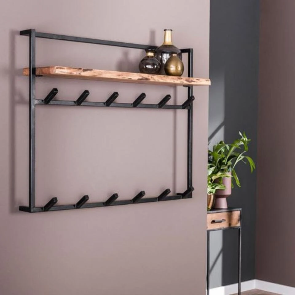 Industriële Kapstok Yme Acaciahout Metaal – 30x100x27 Cm – Hout – Zwart