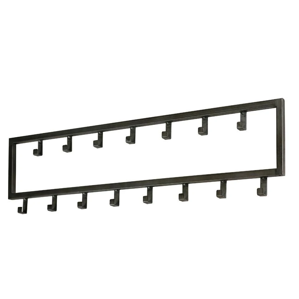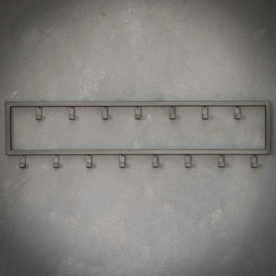 De kapstok industrieel 15 haken – 80 cm past dankzij zijn ontwerp perfect binnen een industriële, stoere of moderne inrichting. Hij is in zijn geheel gemaakt van gepoedercoat staal en heeft een zwarte afwerking gekregen. Deze variant bestaat uit 15 haakjes die verdeeld zijn over twee rijen. Hierdoor is er genoeg ruimte voor verschillende jassen, sjaals en andere accessoires. De kapstok is voorzien van twee oogjes aan de achterkant om de kapstok mee te bevestigingen. Het bevestigingsmateriaal wordt niet meegeleverd omdat verschillende wandmaterialen vragen om verschillende soorten wandbeslag. Kapstok industrieel 15 haken is licht van gewicht en daardoor gemakkelijk te bevestigen en geschikt voor diverse wandsoorten.