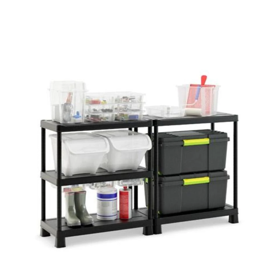 Het KeterTribac kunststof opbergrek geeft je complete vrijheid in het opzetten en inrichten van jouw bergruimte. Op de staanders kun je namelijk op gewenste hoogte de legborden plaatsen. Ook kan het opbergrek in twee delen naast elkaar gemonteerd worden om zo een soort van werkbank te creëren.