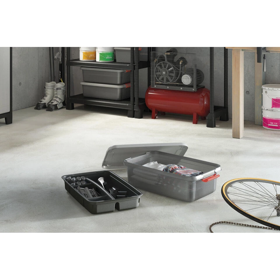 K Latch Opbergboxen zijn slijtage- en stootbestendig ontworpen. De verstevigde hoeken maken de opbergbox erg sterk. Door de ergonomische handgrepen is deze opbergbox met deksel veilig en gemakkelijk te openen. Door het scharnierend deksel, kun je snel en gemakkelijk bij de inhoud van de opbergdoos zonder het deksel volledig te verwijderen.K Latch opbergbox M• Ergonomische handvatten met rubberen inzet voor een betere grip