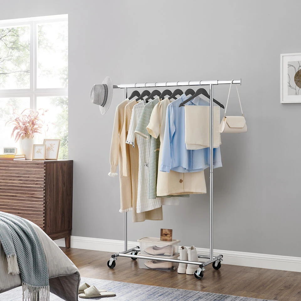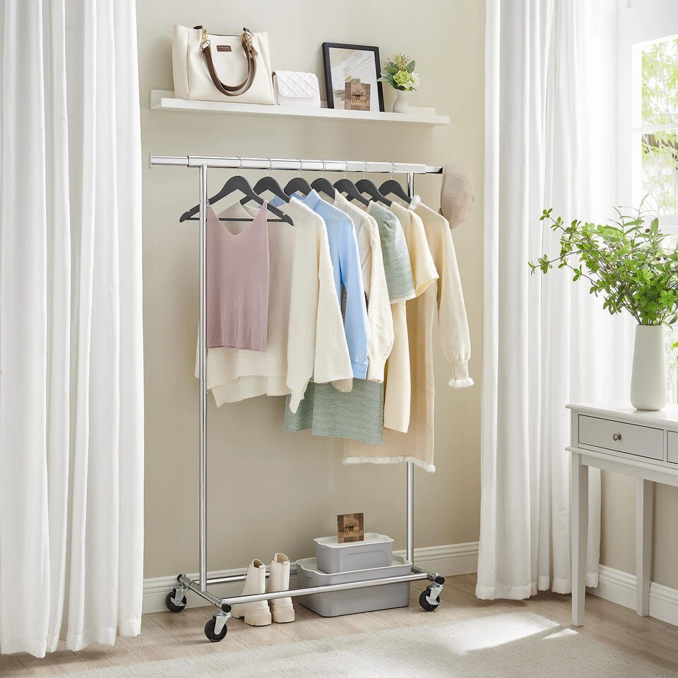 MAKKELIJK TE MONTEREN: Dankzij het overzichtelijke aantal losse onderdelen en de eenvoudig te begrijpen instructies is dit kledingrek eenvoudig te monteren. In slechts enkele stappen en klikken heeft u een stabiele metaal verchroomd kledingrek