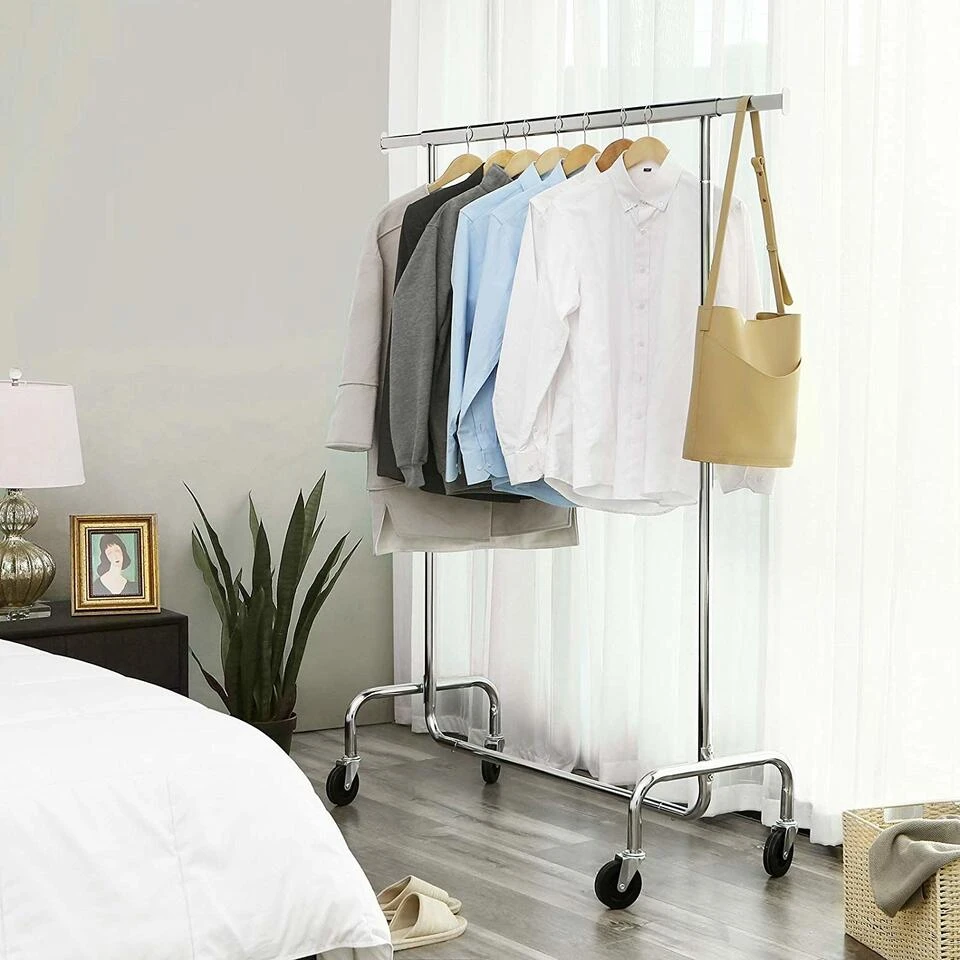 Hoogwaardig materiaal: Gemaakt van verchroomde metalen buizen, is dit kleding rek bestand tegen roest, erosie en krassen en is ook gemakkelijk te reinigen; het glanzende en heldere oppervlak voegt een strakke en decoratieve uitstraling toe aan uw huisdecor.