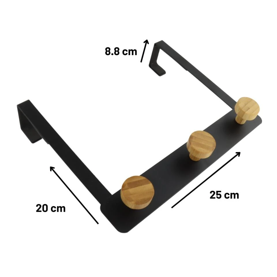 Deze kapstok van Orange85 is eenvoudig te bevestigen aan een deur. De kapstok is geschikt voor een deur met een maximale dikte van 5 cm. De kapstok is gemaakt van metaal en beschikt over drie ophang plekken. De haken zijn gemaakt van bamboe. De breedte van de kapstok is 25 cm. Kapstok voor aan de deur Voor maximale dikte van 5 cm 3 haken Breedte van 25 cm Specificaties van de deurkapstok 3 haken: Merk: Orange85 Kleur: Zwart Materiaal: Metaal, bamboe Afmetingen: 25 x 8.2 x 20 cm Het merk Orange85 is vooral bekend onder de categorieën: Sport, Outdoor, Living, Kitchen en Beauty&Care. Het diverse aanbod van Orange85 bestaat uit kwalitatieve en stijlvolle producten.