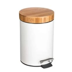 De prullenbak van Orange85 is geschikt voor 3 L aan afval. Het is een pedaalemmer en wordt niet geleverd met zakken. De prullenbak is rond van vorm en is wit van kleur. De pedaalemmer is gemaakt van metaal en bamboe.