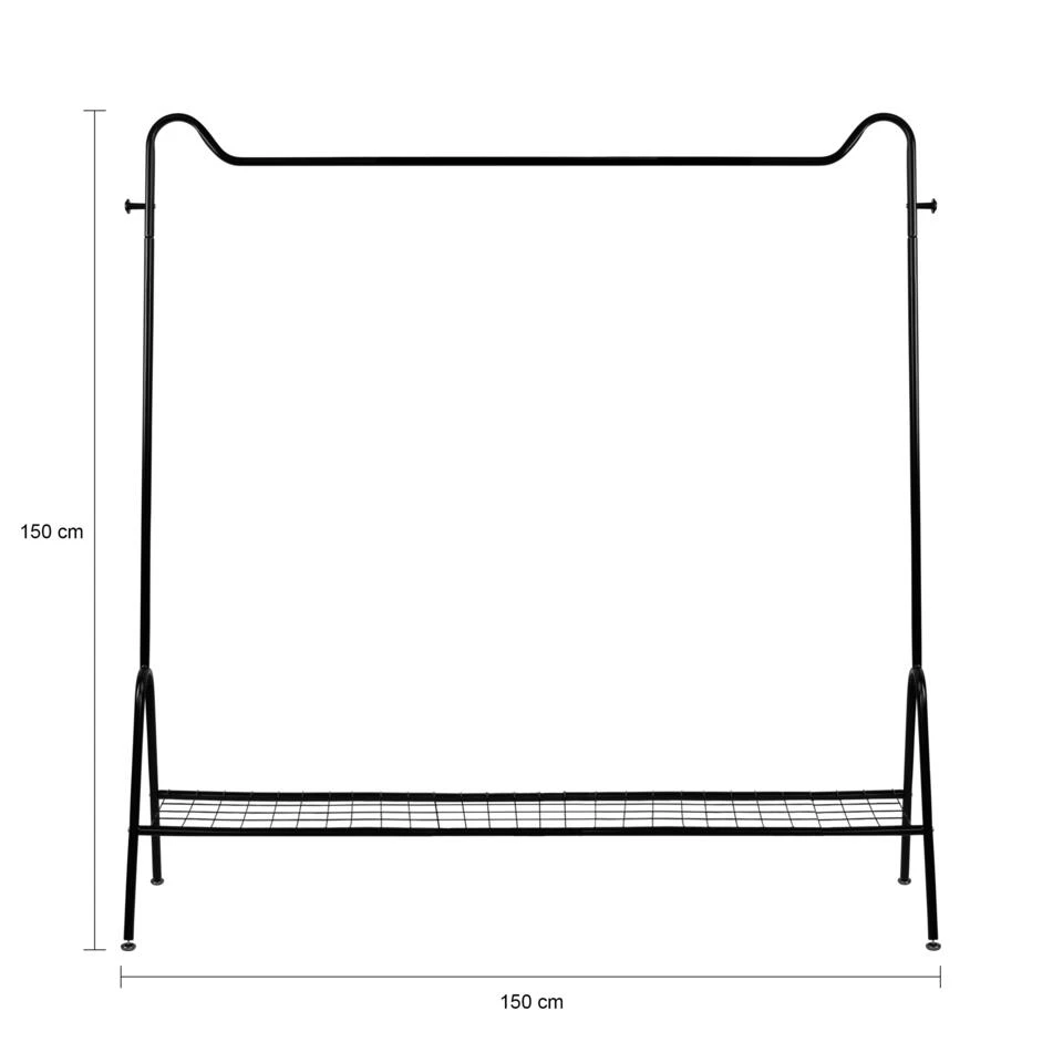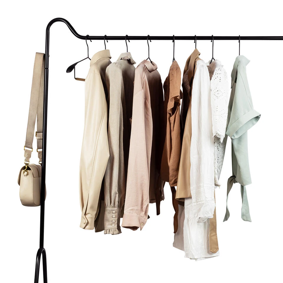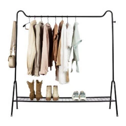 Het design van dit kledingrek is minimalistisch en functioneel. Het rek heeft onderin een plank voor schoenen, terwijl aan de bovenkant een buis voor kleerhangers te vinden is. Aan allebei de zijkanten vind je een haakje, waar je bijvoorbeeld een badjas aan kunt hangen. Over elk detail van dit ontwerp is goed nagedacht. Less is more is bij dit staande kledingrek dan ook zeker van toepassing. Het eenvoudige design is deel van de kracht. Bovendien past dit rek hierdoor in alle soorten woonstijlen.