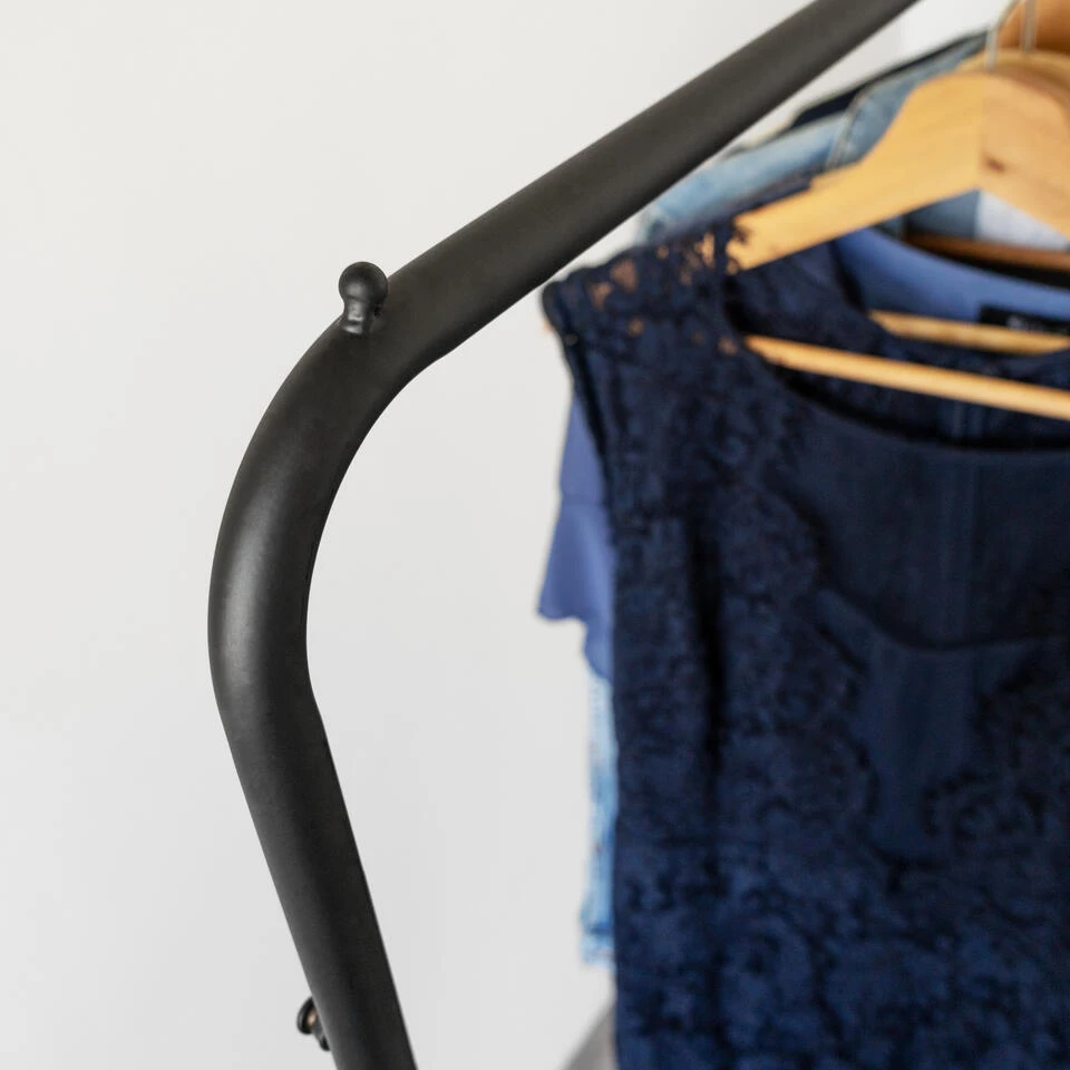Met zijn 150 centimeter hoogte is het kledingrek geschikt voor allerlei items. Natuurlijk hang je er blousejes en shirts op, maar ook jurken zijn geen enkel probleem. Je jurk raakt de vloer niet en er is zelfs nog ruimte over om iets onder de kleding neer te zetten.