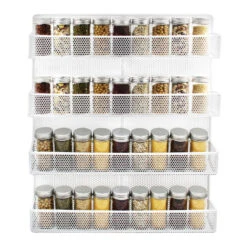Met het ophangbare QUVIO stalen kruidenrek zet je al jouw kruiden netjes op een rij. Vanaf nu vind je de juiste kruiden voor elk gerecht zonder tijdsverlies. Er passen minimaal 32 kruidenpotjes op het rek. Het kan niet anders,het rek brengt een einde aan alle mogelijke kruiden-chaos. Eindelijk geen gerommel meer met al die losse potjes. Plaats ze soort bij soort of kleur per kleur. Het is wat voor jou het beste werkt. Het rek is plaat besparend en gemakkelijk te bevestigen met de bijgevoegde schroeven. Het ophangen is dan ook een eitje. Hang hem aan de muur of verwerk ‘m in een keukenkastje. Zo wordt ie een dressing voor iedere keukengoeroe. Het ziet er leuk uit en geeft ruimte voor de smalle potjes en ook die een bolle onderkant hebben. Het QUVIO stalen kruidenrek zit stevig in mekaar en is simplistisch modern. Zo gaat alle aandacht naar jouw kruidenassortiment. Waar je het rek ook bevestigd,het neemt slechts 7,5 x 43 x 52,5 cm (lxbxh) aan ruimte in beslag. Het rek biedt veel opbergruimte,maar neemt dus amper plaats in. Als dat niet getuigd van een overduidelijke win-win! En het moet gezegd zijn…slimme kastinrichting is een voordeel voor iedere kok.