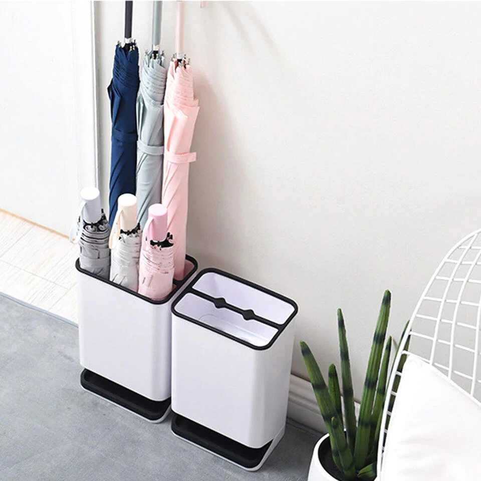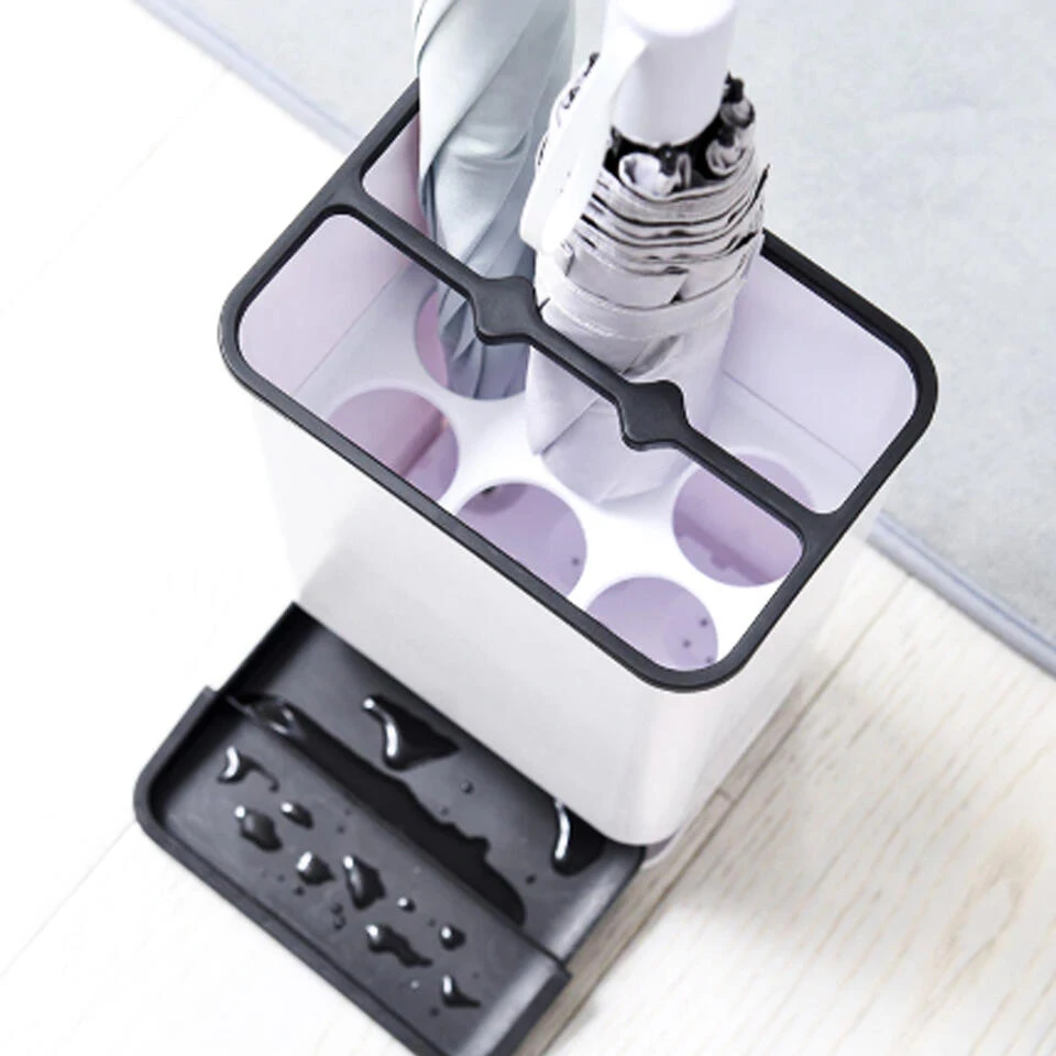 Is het vies weer buiten? Gelukkig heb je een grote paraplu die je droog houdt. Maar toch kijk je er naar uit om thuis te komen en snel op te warmen bij de kachel of de verwarming. Je kan je paraplu gemakkelijk kwijt in deze handige QUVIO parapluhouder. Ga je opnieuw de deur uit? Dan vis je hem zo weer uit de houder. Het achtergebleven regenwater loopt naar beneden en komt in het speciaal daarvoor ontworpen reservoir terecht. Er kan dus geen water uit de paraplubak op de vloer lopen. Het lekbakje is bovendien uitneembaar en kan je gemakkelijk legen. De lekbak zorgt voor een opening onderaan. Hierdoor is er voldoende ventilatie in de houder. Zo zal je paraplu sneller drogen.