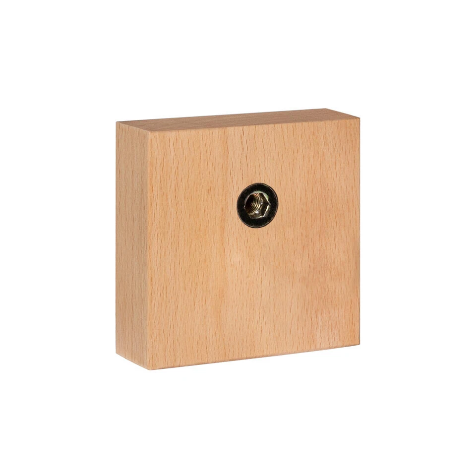 De wandhaak kan op twee manieren gemonteerd worden. De eerste manier is met een schroef in de muur. Je ziet deze schroef na bevestiging niet, omdat deze aan de achterkant van het houten blokje zit. De tweede manier om de haken te monteren is met lijm of ander stevig plakmateriaal.
