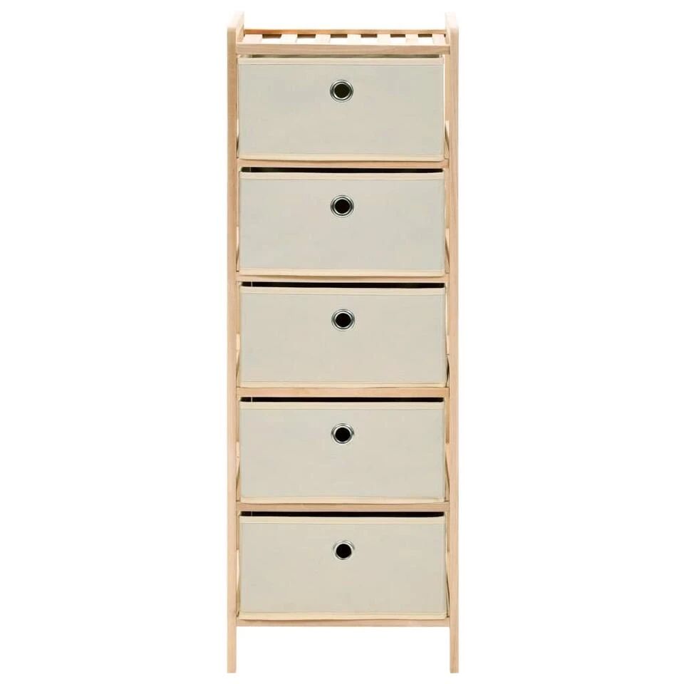 Dit massief cederhouten opslagmeubel met 5 aparte stoffen manden biedt voldoende ruimte om je dagelijkse voorwerpen op te bergen.
