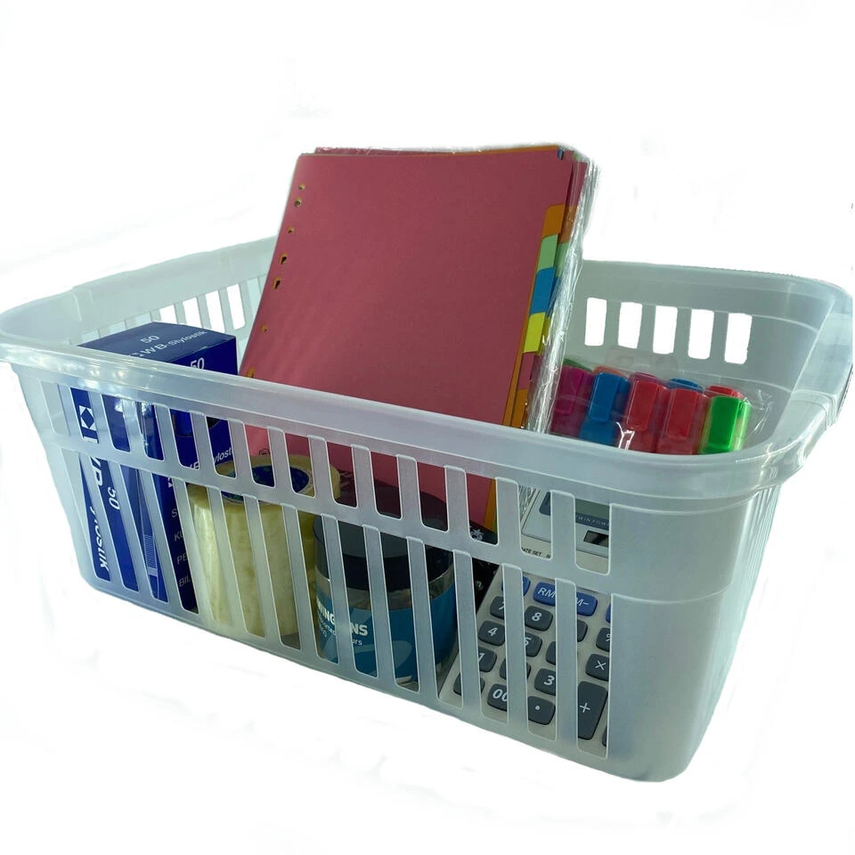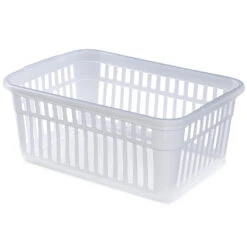 Opbergmand/kastmandje transparant. Dit opbergmandje is een kast-organizer en is ideaal om in de badkamer, keuken of slaapkamer te plaatsen. Dit mandje is bijvoorbeeld geschikt om make-up, toiletartikelen, speelgoed, kantoor spullen en kledingstukken zoals ondergoed of sokken in op te bergen.