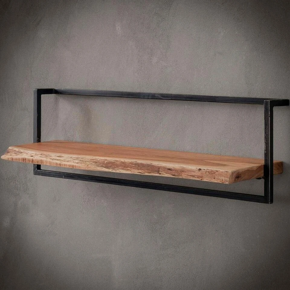 Creëer een gave en unieke wand met de verschillende wandplanken uit de Woody Metaal-serie! Deze wandplank heeft een breedte van 100 cm en is 30 cm hoog. Hij bestaat uit een massief acaciahouten plankje, welke aan het uiteinde een gave afgeschuurde boomstamvorm heeft gekregen. Het wandplankje is bevestigd aan een stalen frame met vintage uitstraling en past hierdoor zowel in een natuurlijk als industrieel interieur. Decoreer één of meerdere wandplankjes met persoonlijke spulletjes, vaasjes, beeldjes en andere woonaccessoires voor een persoonlijke touch in uw woonkamer. Wandplank Woody Metaal is door middel van twee bevestigingsogen eenvoudig aan de wand te monteren.