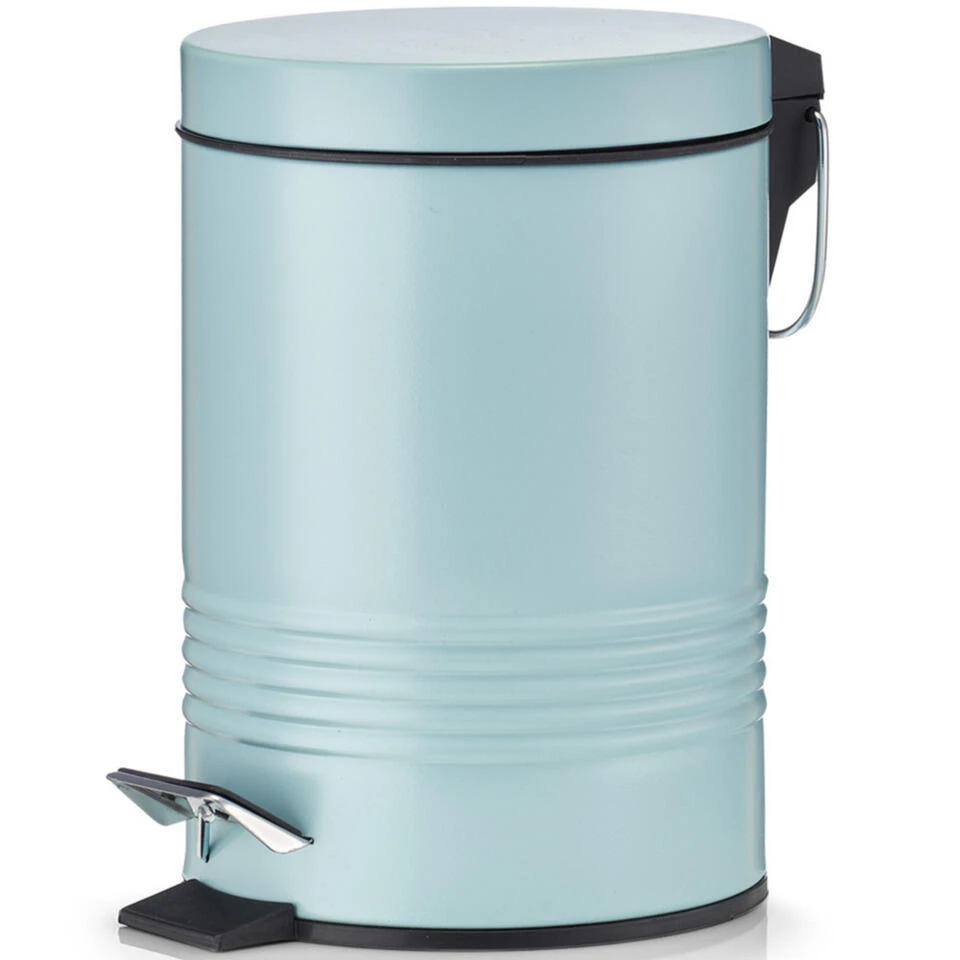 1x Mintgroene vuilnisbakken/pedaalemmers 3 liter. Een mintgroen deels gegroefde vuilnisbak/vuilnisemmer/pedaalemmer/prullenbak, met pedaal opening/sluiting. De vuilnisbak heeft een metalen handvat voor makkelijk verplaatsen en een kunststof verwijderbare binnen emmer met handvat.